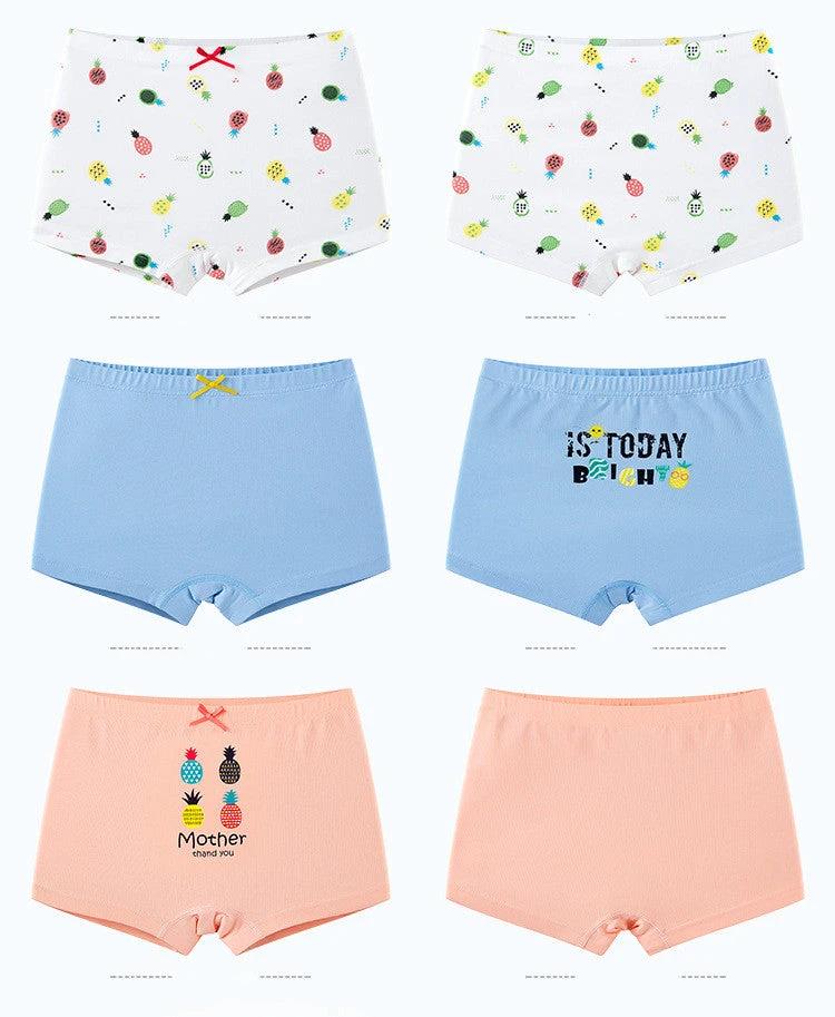 Este conjunto de ropa interior tipo bóxer de algodón para niñas ofrece una cobertura práctica para todos los días en paquetes de tres, con estampados creativos para un toque divertido.