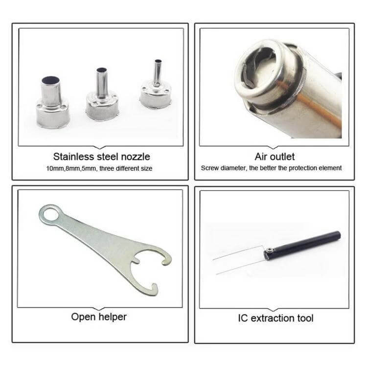 - AC 26V±10%, 40W, rapid heat-up and controlled airflow for desoldering.