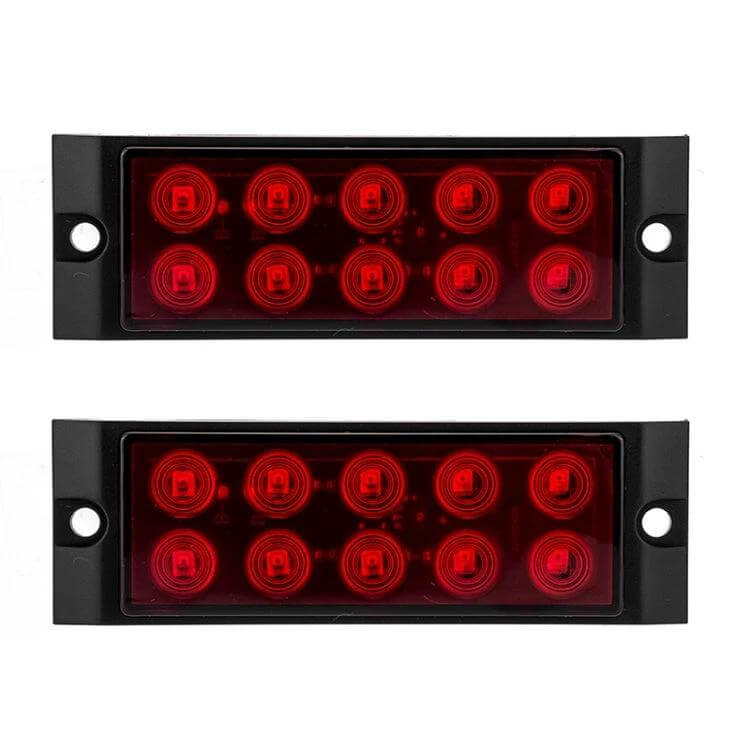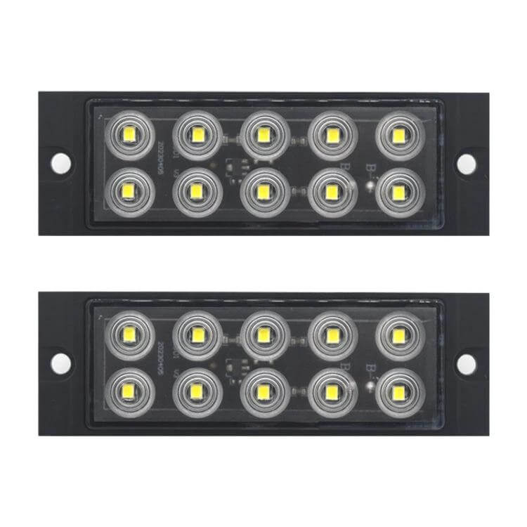 This 2-pack of car side marker lights delivers practical white illumination with 10 LEDs per unit. The compact housing measures 100 mm (L) x 33 mm (W) x 10 mm (H) for a low-profile look.