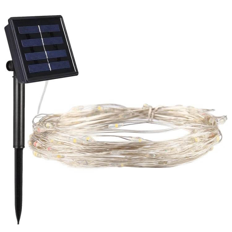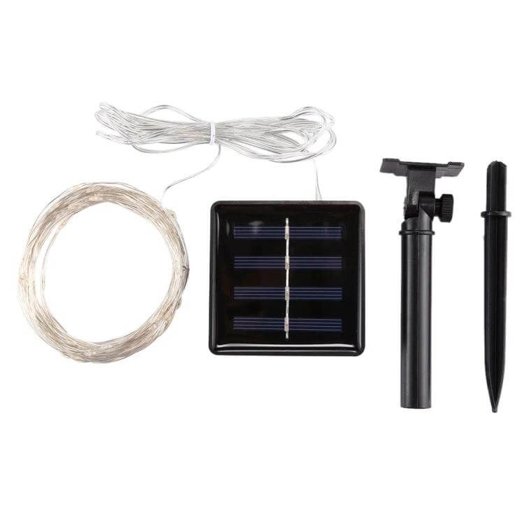 This 20 m solar string lights set provides outdoor illumination powered by a compact solar panel. It uses a built-in Ni-MH battery (600 mAh) for energy storage and is designed for reliable, weather-resistant use.