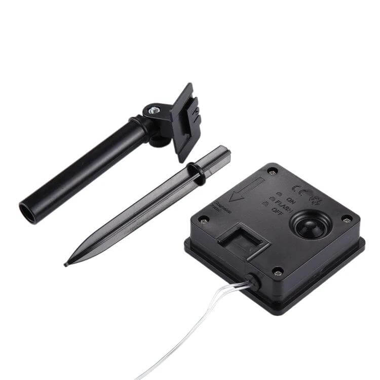 Specs: Length 20 m; Battery 600 mAh Ni‑MH; Solar panel 300 mA; IP65 rating.