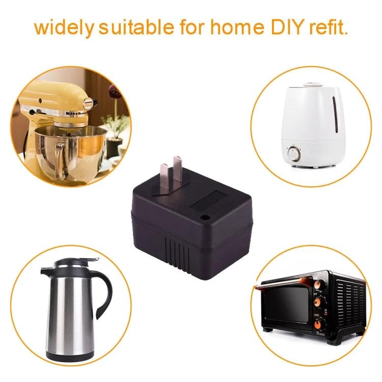 This voltage converter adapter transforms 220V power to 110V, helping users connect devices safely between regions like Europe and the US.