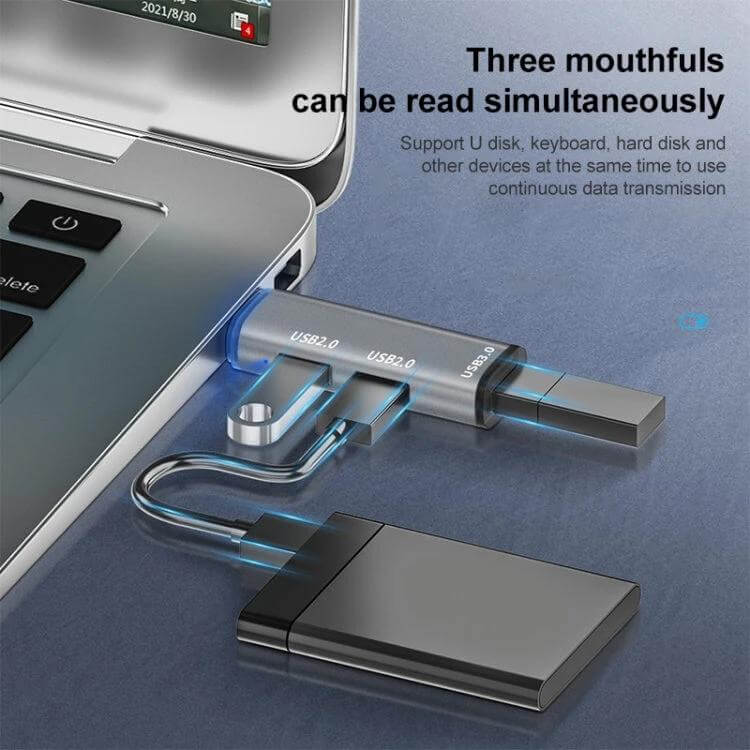 The 3-in-1 USB-C Hub Docking Station provides a straightforward solution for expanding device connectivity, featuring three ports for efficient peripheral management.