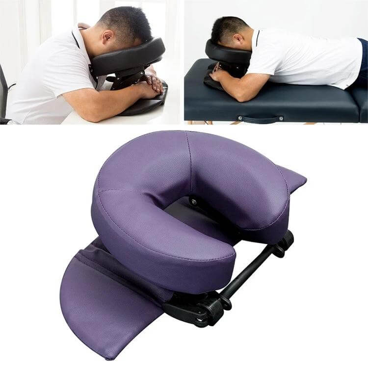 The Adjustable Headrest Face Pillow is designed for daily comfort at a desk, in salons, or on massage tables. Crafted with a synthetic leather cover and breathable sponge, it folds compactly for easy storage.