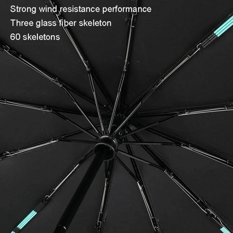 This automatic umbrella provides reliable protection against both rain and sun, featuring a durable design with 60 reinforced bones for enhanced stability.