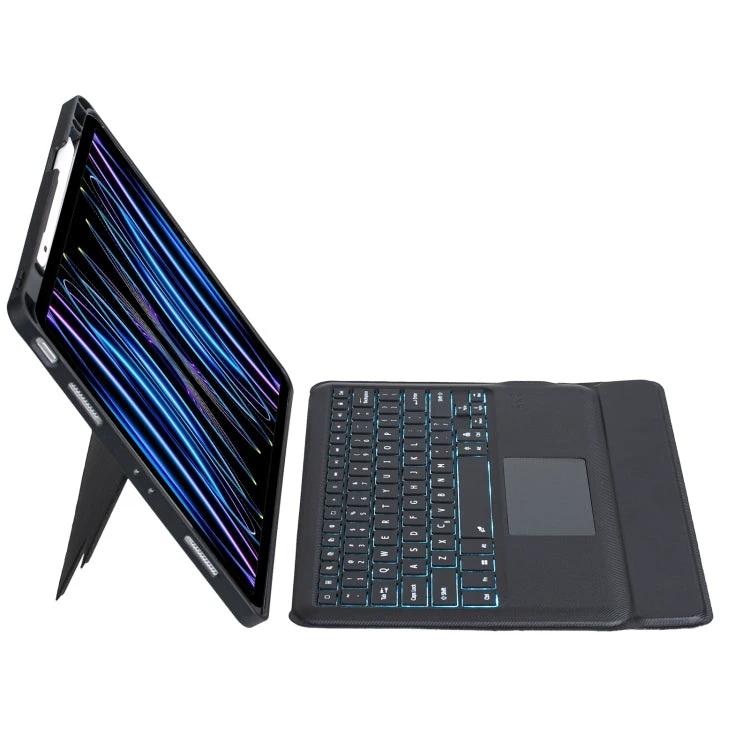This backlit Bluetooth keyboard case is designed for the iPad Pro 12.9, offering a protective leather exterior combined with wireless typing functionality.
