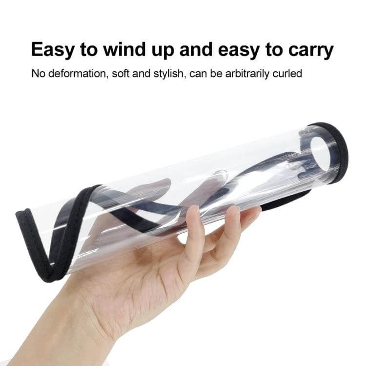 Specifications: Size 54–64 cm; Materials: cotton fabric and transparent TPU shield; Care: washable or wipe-clean with alcohol; Use: four-season wear.