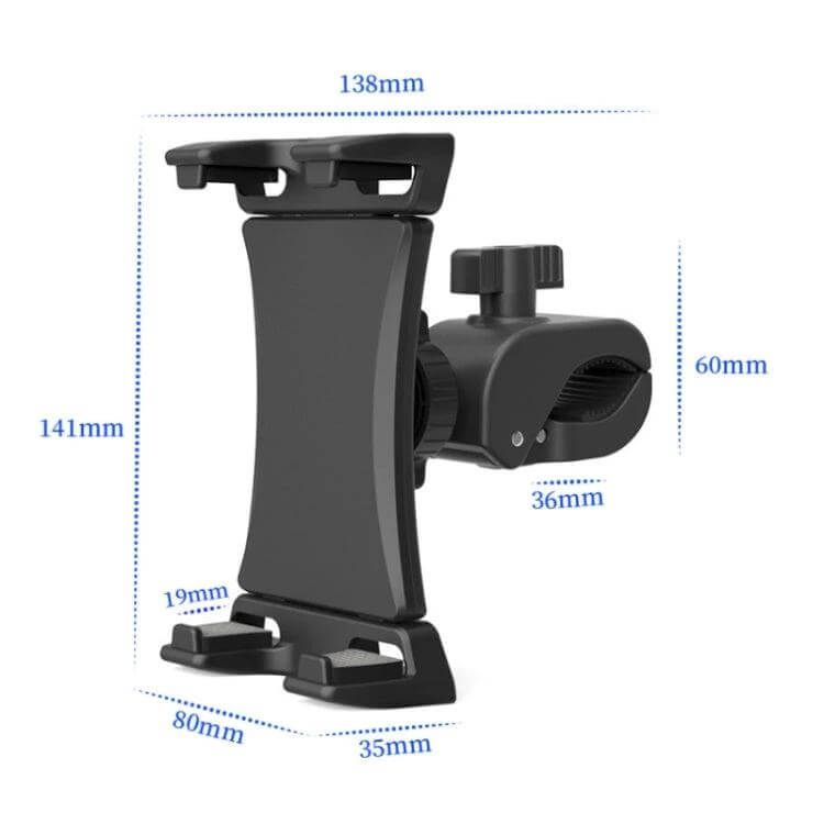 The Bicycle Handlebar Phone Holder secures devices from 4.5 to 12.9 inches on handlebars. Made of ABS, it offers a durable, lightweight mounting option for on-the-go visibility.