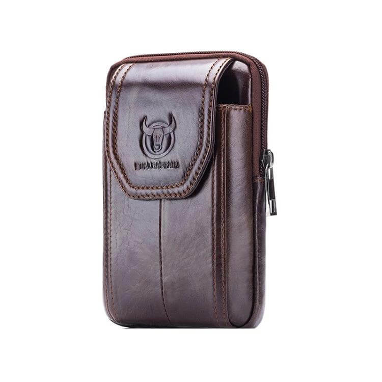 Bull Captain Leather Waist Bag for Men in brown offers practical organization for daily errands. Crafted from cowhide with a soft inner layer, it balances compact size with essential capacity.