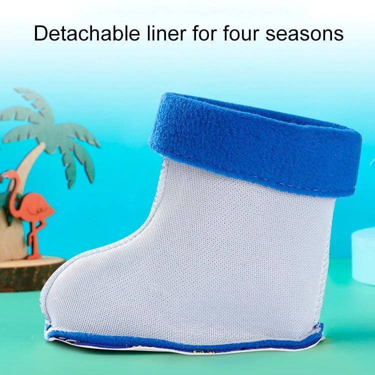 Children's rain boots designed for everyday outdoor adventures, offering protection from wet weather with a fun cartoon pattern.