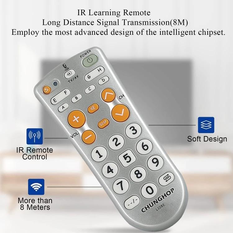 The CHUNGHOP Infrared Learning Universal TV Remote provides a straightforward way to control multiple infrared devices from one unit. It allows you to copy functions from your original remotes, making it easier to manage home entertainment setups without needing multiple controls.