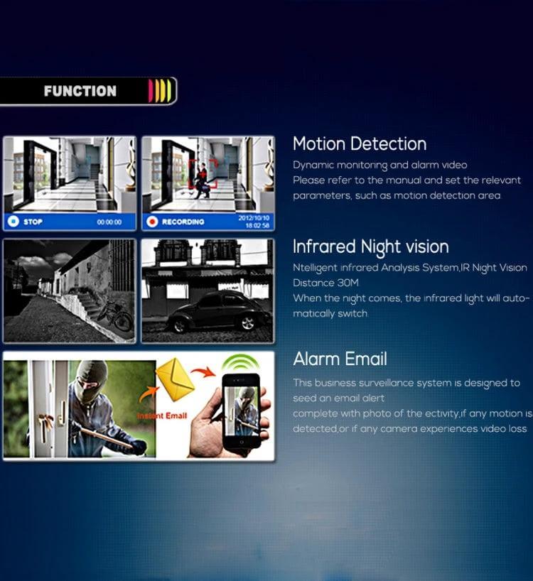 - Utilizes H.264 compression to reduce file sizes while maintaining clear footage, optimizing storage space.