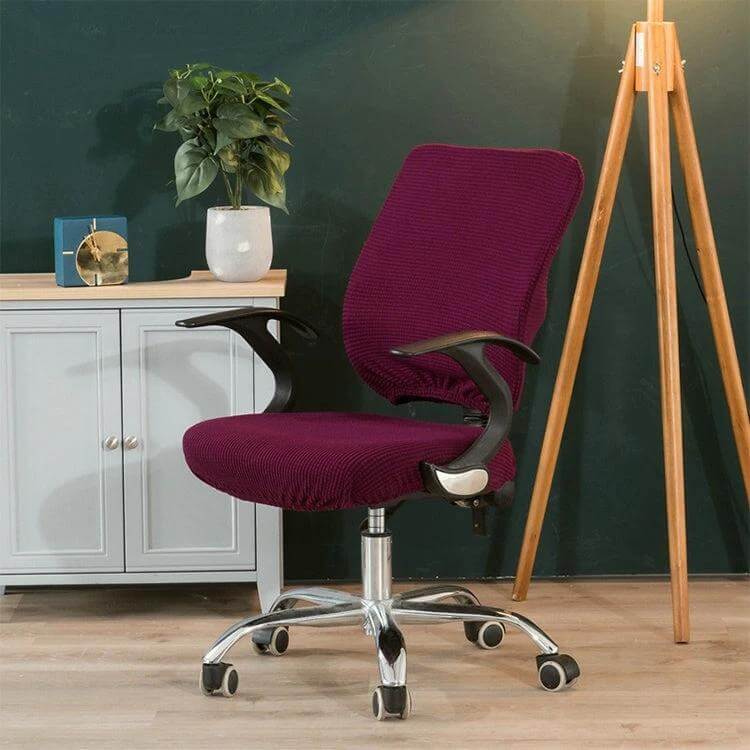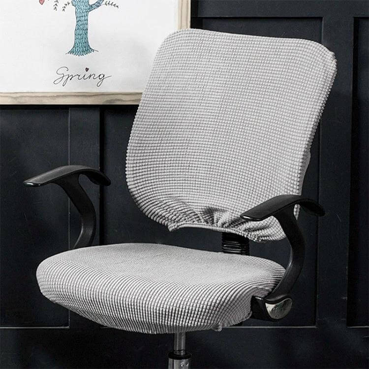 A practical cover that protects and refreshes standard office chairs with a split back and seat.