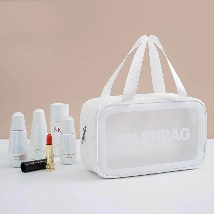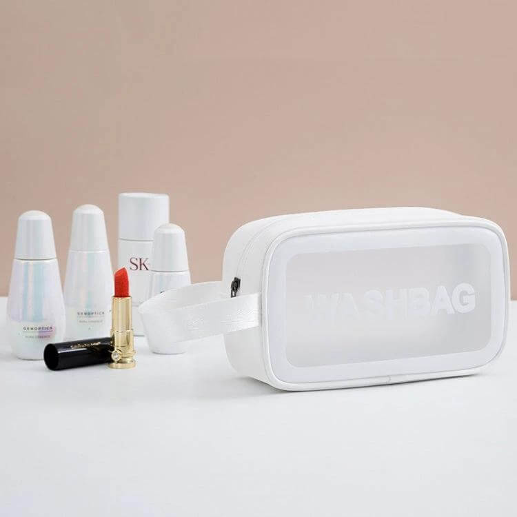 Frosted Translucent Waterproof Storage Bags, 2-pack, offer practical organization for travel and daily use. Made from PVC with a frosted finish, these bags seal with a zipper and resist moisture and dust.