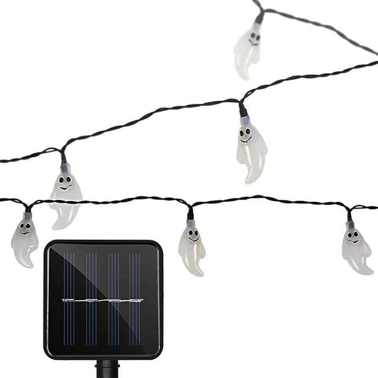Ghost Shape Solar LED String Lights offer subtle outdoor illumination for gardens, patios, and walkways. The 6-meter string includes 30 ghost-shaped LEDs and a compact solar panel for wire-free operation.
