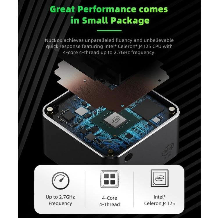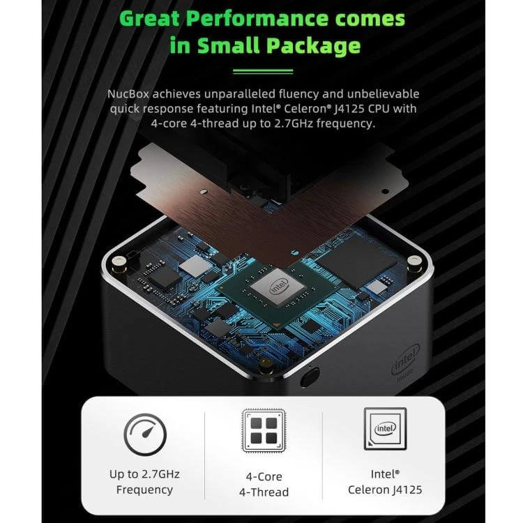 - Powered by a Celeron J4125 processor with 4 cores and 4 threads, reaching up to 2.7GHz for smooth daily performance.