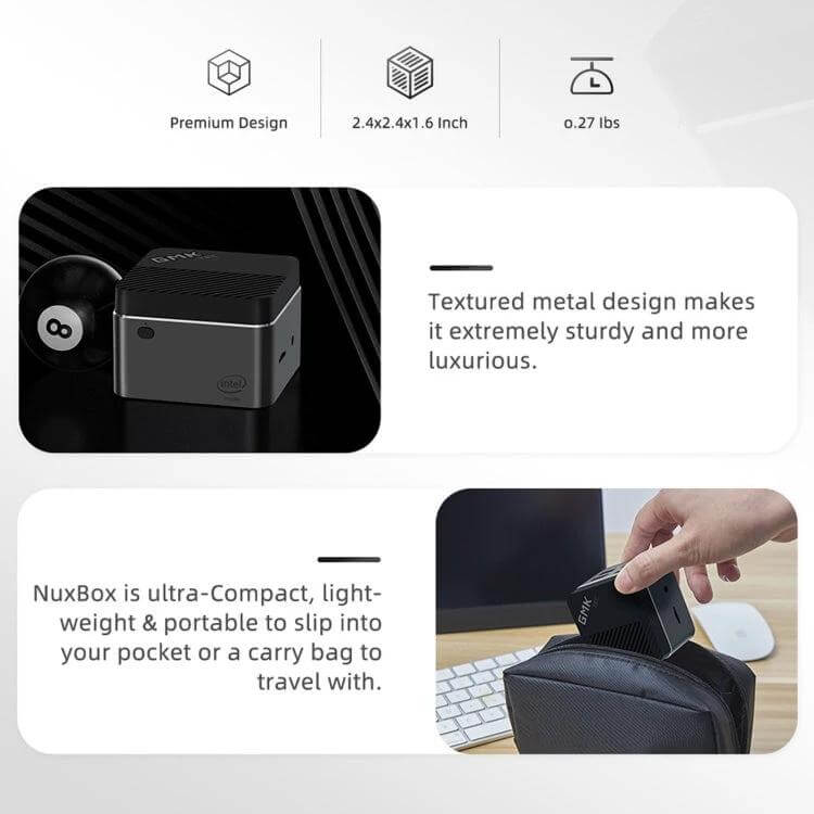 The GMK NucBox is a compact mini PC equipped with Windows 10, offering a practical solution for everyday computing needs in tight spaces.