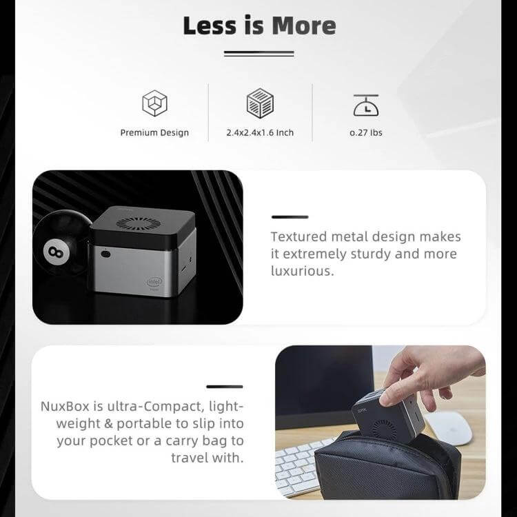 This mini PC fits those needing a reliable, portable computing option for routine tasks, helping manage workspace efficiently without excess power demands.