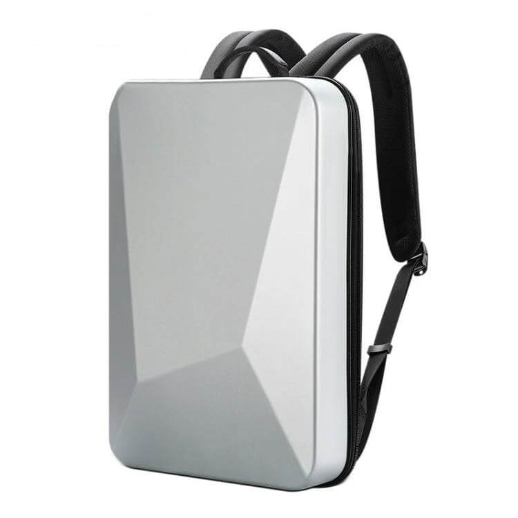 Hard Shell Expandable Backpack in black offers a rigid exterior with practical organization for daily commutes, travel, or campus use. A PC shell with carbon fiber reinforcement adds durability.