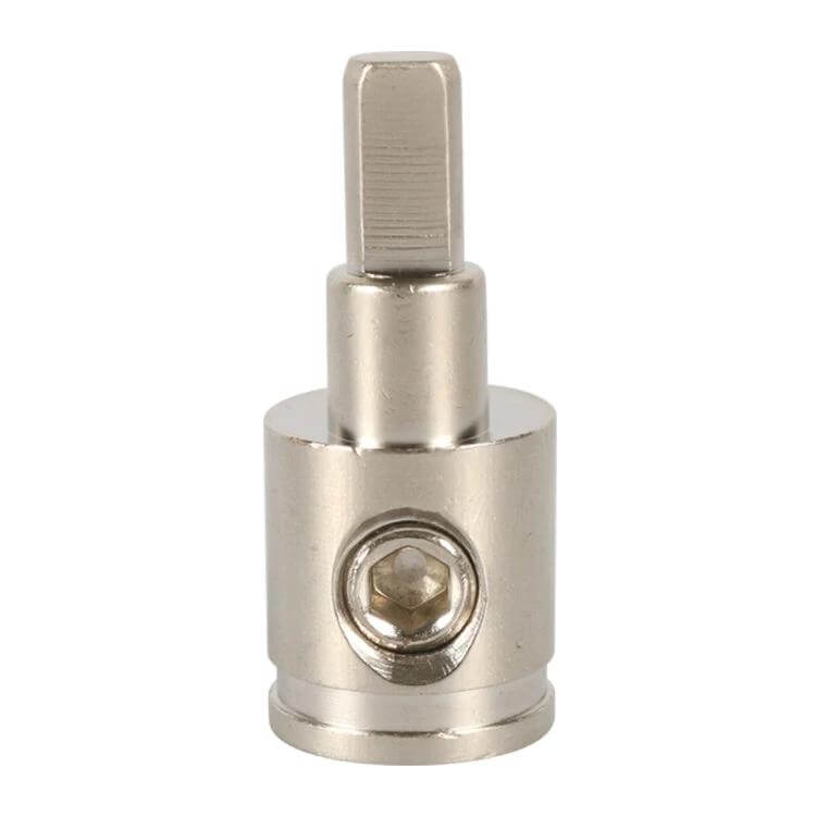 The nickel-plated brass car audio terminal block serves as a reliable connector for automotive wiring setups, particularly for 0GA to 4GA wires. Its design focuses on secure and efficient electrical connections in car audio systems.