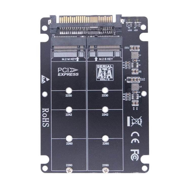 - Supports M.2 NGFF (SATA Key B) and NVMe (Key M) protocols for versatile compatibility