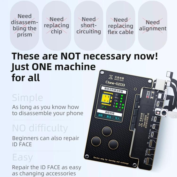 The MEGA-IDEA iPhone Battery Activation and Face ID Repair Tool assists with common iPhone maintenance tasks like battery data management and Face ID repairs.