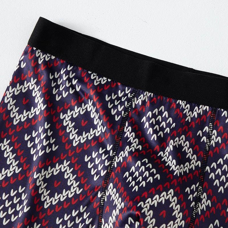 - Six underwear pieces per pack with varied prints, including geometric, tropical, and maple leaf designs.