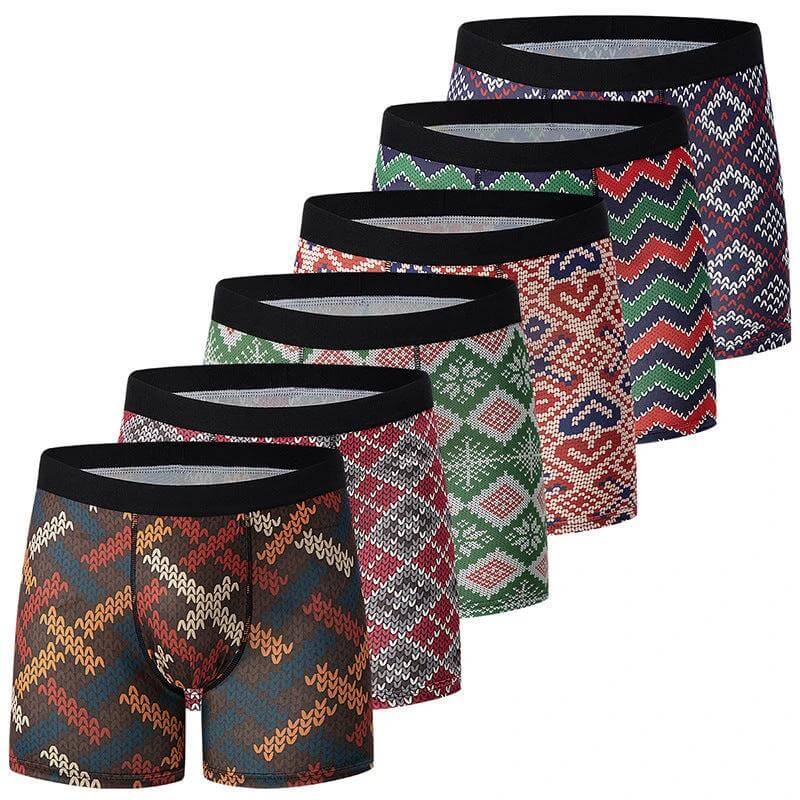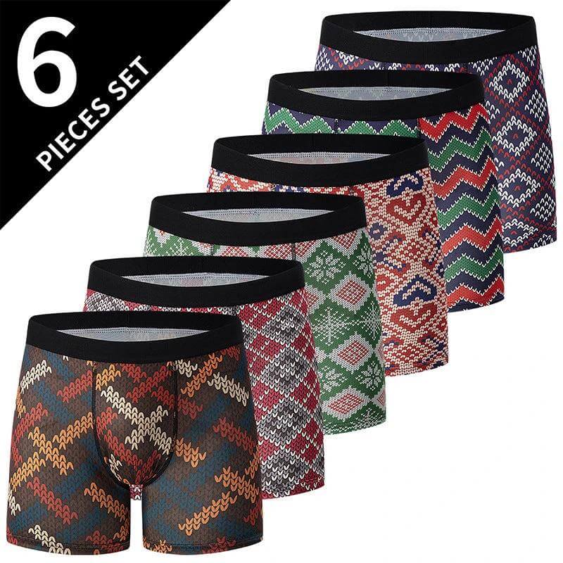 Specifications: Size range S–XXXL; Pack: 6 pieces; Waist: mid-rise; Patterns: geometric, tropical, maple leaf.