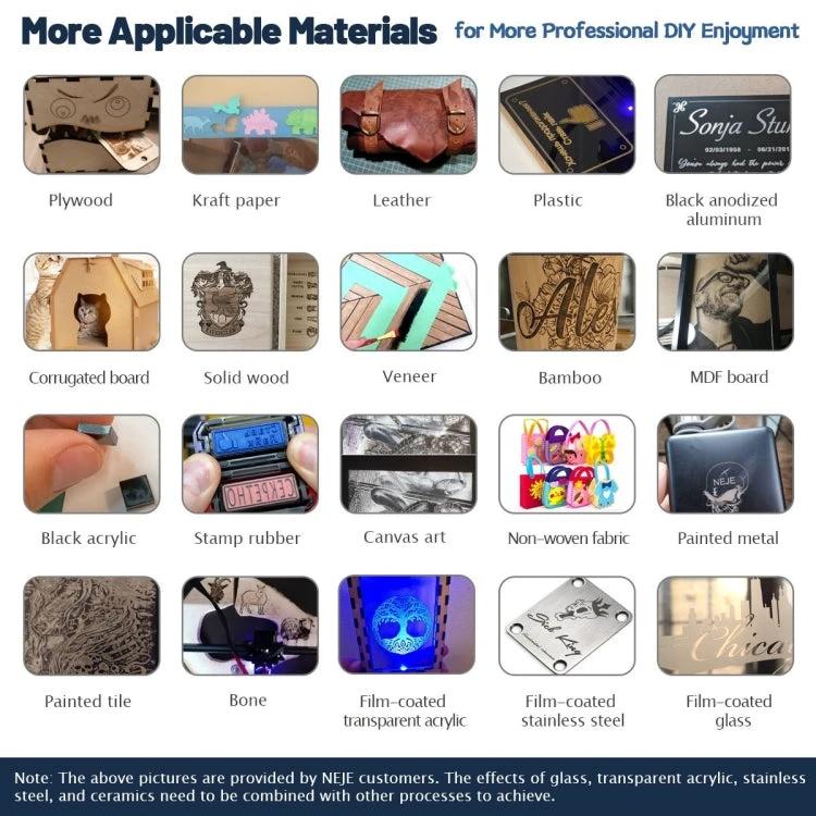- Supports multiple software options, including LaserGRBL, Lightburn, and NEJE apps for Android and iOS, enhancing workflow flexibility.