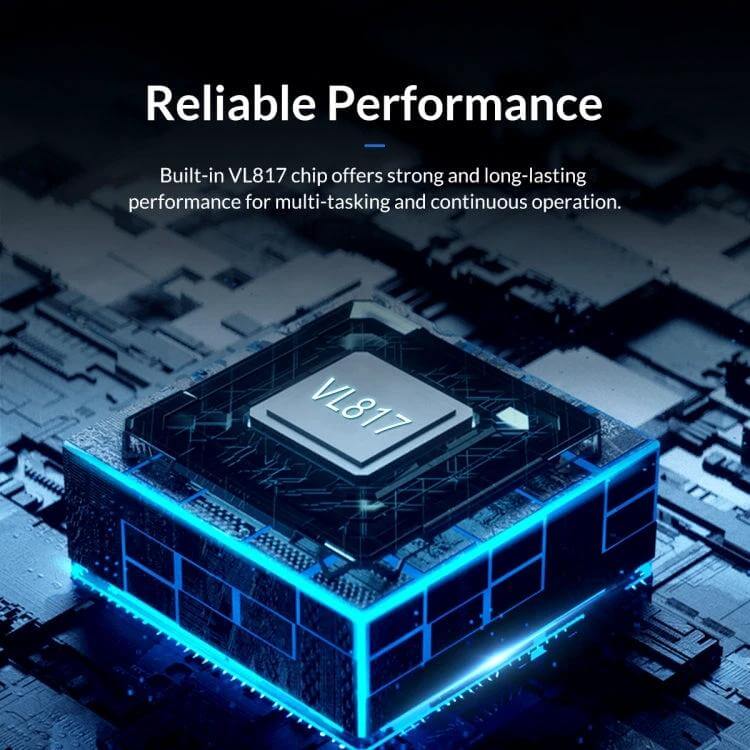 - Uses an external 12V 2A power adapter to support multiple devices without performance drops.
