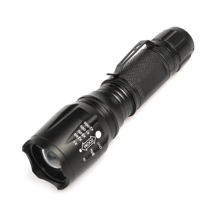 The Pen Clip Mini Flashlight is a compact aluminum-constructed light designed for everyday carry. It uses a 10W LED (CREE-T67) with telescopic focus and a 3.7V power system that accepts a single 18650 rechargeable battery or three AAA cells (charger not included).