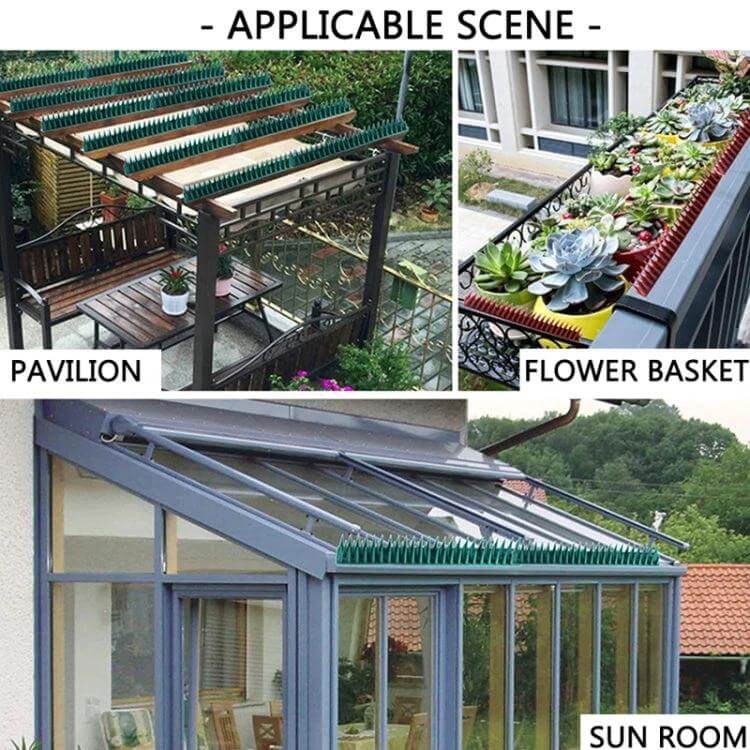 Use them on balconies, eaves, flower houses, or garden fencing to reduce bird roosting and climbing without chemicals or noise.