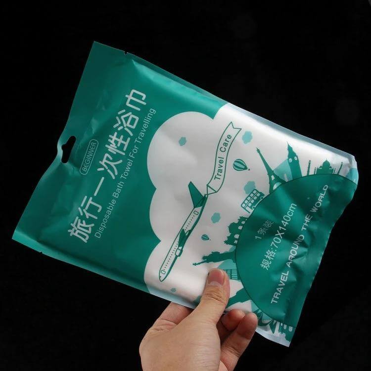 This portable disposable travel towel offers a practical, single-use solution for refreshment on the go. Made from cotton spunlace nonwoven fabric, it provides a soft touch and ready-to-use convenience.