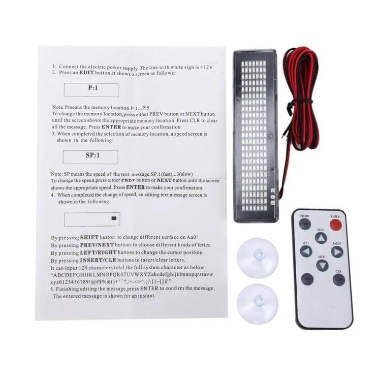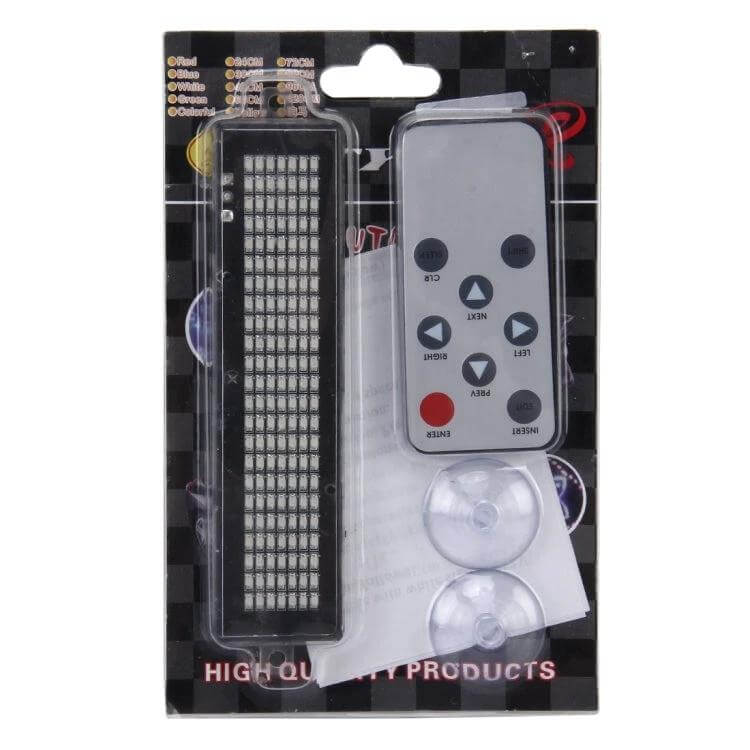 The Programmable LED Message Sign for Cars with Remote Control offers a straightforward way to display custom text on your vehicle. It uses suction cups for quick attachment, making it simple to set up without tools.