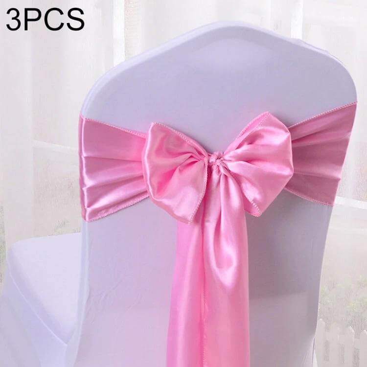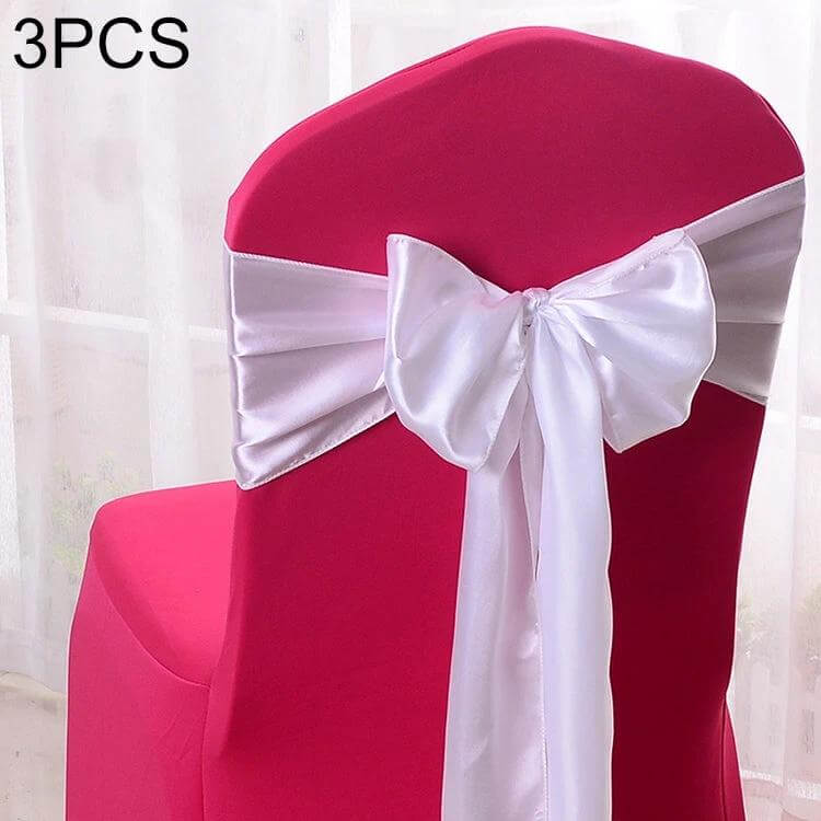 Satin Chair Bows 3-Piece Set offers simple chair décor for weddings, banquets, and events. Each bow is made from satin fabric and features a plain dyed finish, sized to fit standard chair backs.