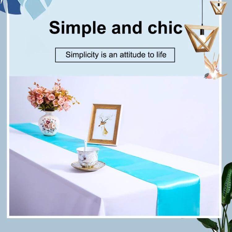 Spec highlights: Model TR01 • Size 30 x 275 cm • Material: 100% polyester satin • Pack: 10 pieces per bag • Colors: five options.