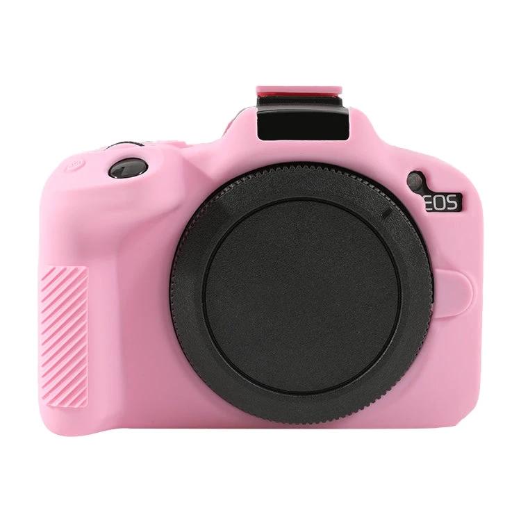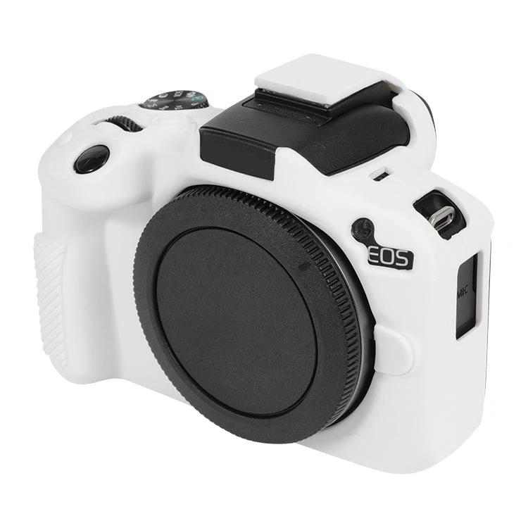 This silicone protective case is designed for the Canon EOS R50 camera, providing a simple way to shield it from potential damage during use.