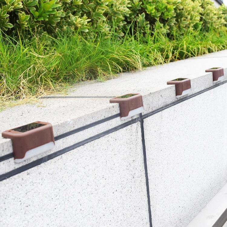 KW-0063 Solar Staircase Light is an outdoor LED fixture designed to illuminate steps and garden paths with a warm white glow. Constructed from durable ABS and PC, it features brown or black shells and is rated IP65 for weather resistance.