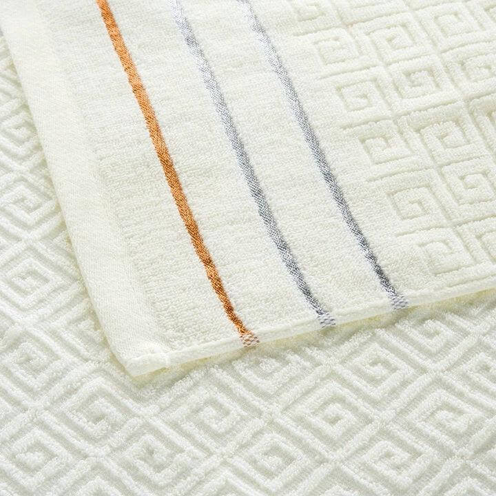 - Contents and sizes: Bath towel 70 x 140 cm; two smaller towels 34 x 70 cm each.