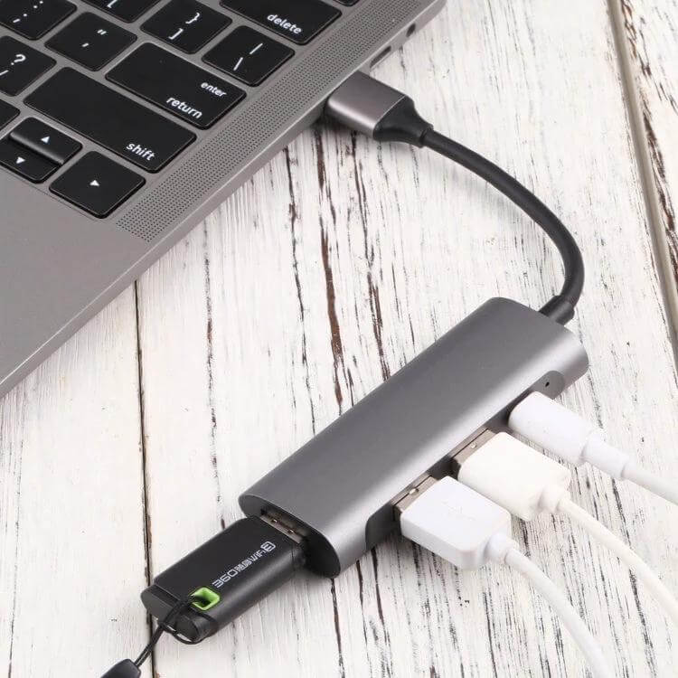 This USB-C multi-port hub connects up to four devices to your Type-C equipped laptop or tablet, offering a straightforward way to expand ports for daily tasks.