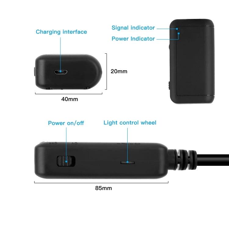 The wireless endoscope camera serves as a practical tool for inspecting hard-to-reach areas, featuring a 5-meter cable for extended reach. With a 5.5mm lens diameter, it's designed for detailed visual inspections in various environments.