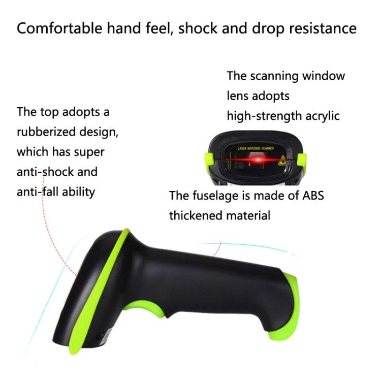 This wireless laser barcode scanner offers reliable performance for inventory tasks in retail settings. It features a laser scanning mechanism for accurate barcode reading, making it a practical tool for daily operations.