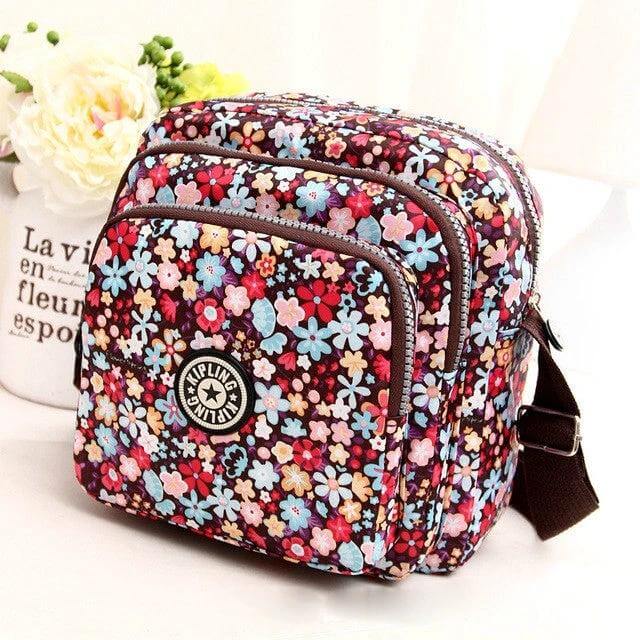 This women's waterproof nylon shoulder bag offers practical storage for everyday use with a casual floral design. A durable nylon exterior and a polyester lining support daily wear while keeping items organized.